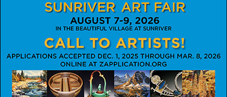 If you are an artist or know someone who would like to exhibit, now is the time to get your application ready. Applications are accepted online only at zapplication.org. Please visit sunriverartfair.org or email us at artistliaison@sunriverartfair.org for more information.