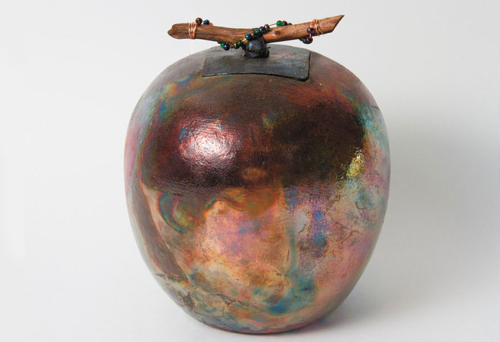 Potter Diane Miyauchi offers beautiful and delicate raku vessels along with her ever popular pottery pieces. The raku pottery finish provides each vessel with a delicate iridescent surface. Some are lidded with wire wrapped handles adorned with beading. While you visit the gallery you may learn more about the interesting process of raku finishes.