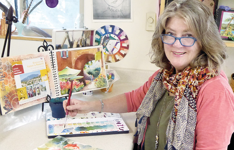 (Photo courtesy of Jacqueline Newbold) Using a warm and colorful palette, Jacqueline Newbold’s watercolor paintings often depict the dramatic skies over the Oregon Cascade Mountains, fields of red poppies, or charming European café scenes. Much of Newbold’s inspiration comes from her travels. She takes along a few painting supplies and her art journal, exploring imaginative…