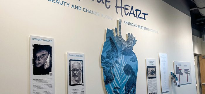 (Blue Heart, an exhibit of the Japanese folk art of gyotaku, or fish rubbing, by artists Dwight Hwang and Duncan Berry, is now on display in the Gladys Valley Marine Studies Building at the Hatfield Marine Science Center in Newport | Photo by Kate Brown) An exhibit of works featuring the traditional Japanese folk art…