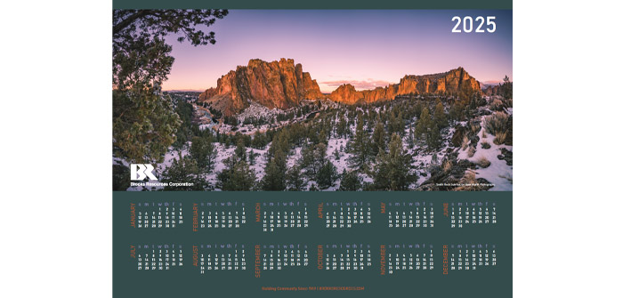 Valerie Yost, director of Marketing for Brooks Resources, said, “Each year we seek out the most spectacular photography to feature on our calendar, and this year we think we’ve really captured both the essence of our area and the season with this image by Nate Wyeth. Surprisingly, this is the first time we’ve featured Smith Rock on our calendar since its inception in the early 80s.”