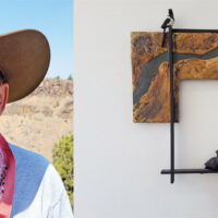 The first fiber arts show at Nancy McGrath Green Gallery in Sunriver, which runs through March, features eleven artists using fiber, mixed media and other textiles in surprising ways. The exhibit includes embroidering, weaving, quilting, crocheting, felting, dyeing, printing – along with artificial intelligence and yarn storming. Materials range from reclaimed linens, lingerie and knitwear to tree branches, photographs, Covid masks and rusty tools.