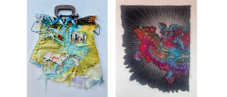 ((Left) Judy Hoiness, Mend & Make do #41 (Right) Exploring Orion Bar by Helen Brisson)