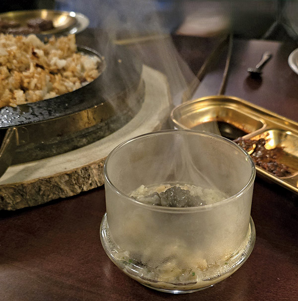 Hard to believe that the best was yet to come, starting with the caviar juk, which featured ostera caviar atop black truffle porridge. Creamy, salty, and smoky, with the perfect amount of lingering truffle, it was divine. And yes, I closed my eyes to better savor each bite.