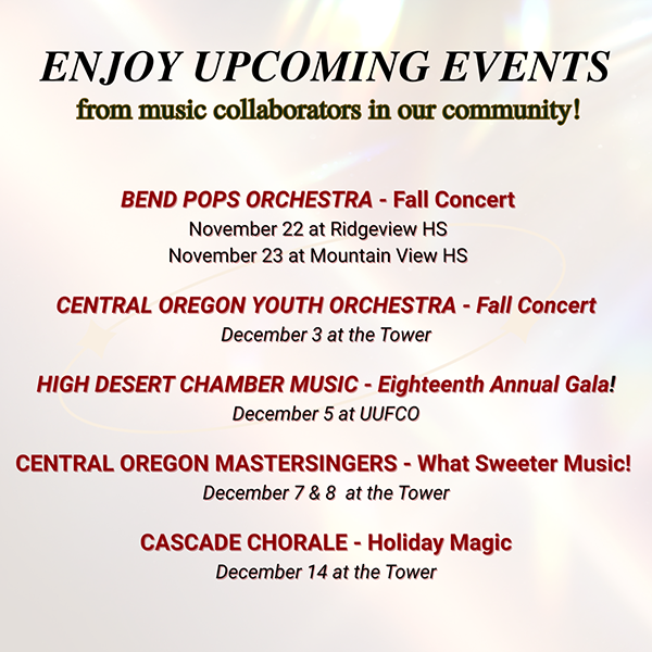 New this year, 20 student musicians will join Concert Rock Violinist Aaron Meyer and his virtuosic band on stage at the Tower Theatre in Bend on Wednesday, December 10. Mentored by Aaron through Concert Rock Academy and our friends at Central Oregon Youth Orchestra, Bend School of Rock, and High Desert Chamber Music Spotlight Chamber Players, and more, these kids are sure to light up the stage!