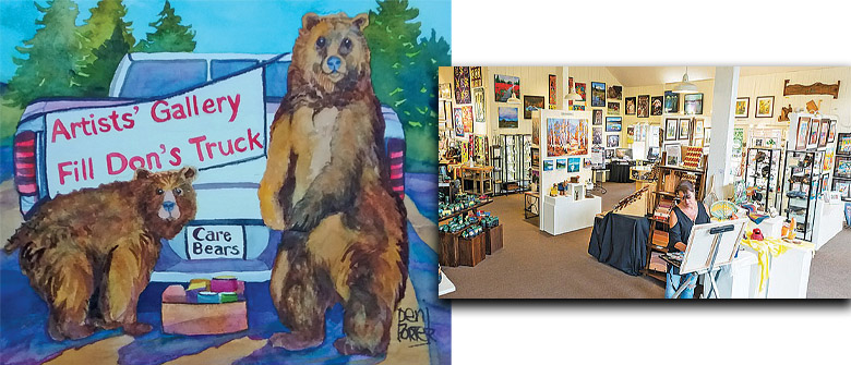 ((Left) 2019 Care Bears Sunriver by Deni Porter (Right) Artists’ Gallery Sunriver. Photo courtesy of Artists’ Gallery Sunriver)