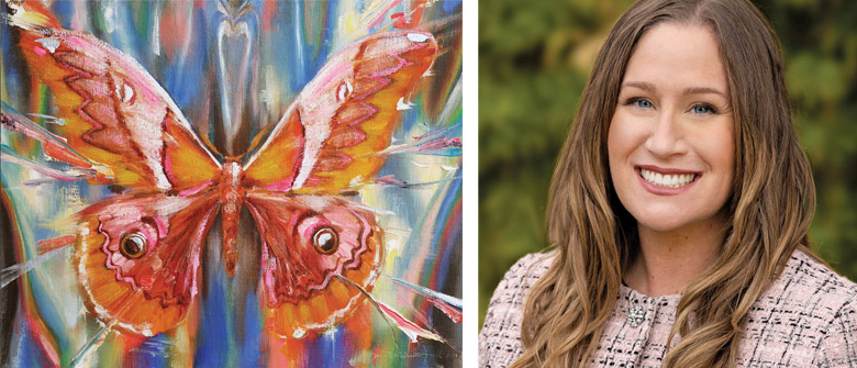 That challenge inspired Dominique to pursue degrees in art, graduating from Pepperdine University and Claremont Graduate University. She credits titans like Mary Cassatt, Richard Schmid and Claude Monet for their impact on her approach to composition and light. Oil painting holds an undeniable allure for her. “Oil paintings are sexy,” Dominique says. “The paint glistens sensuously atop the canvas, luxurious and velvety. It’s my favorite medium. However, the stakes are high — there’s the cost of materials, but also my energy must be extremely focused so I can capture the radiant wing of a butterfly or the spray of silver in the waves. I think to myself, ‘I better make this good.’ I would say my creative superpower is having ideas, so many inspirations and so many things I want to paint.”