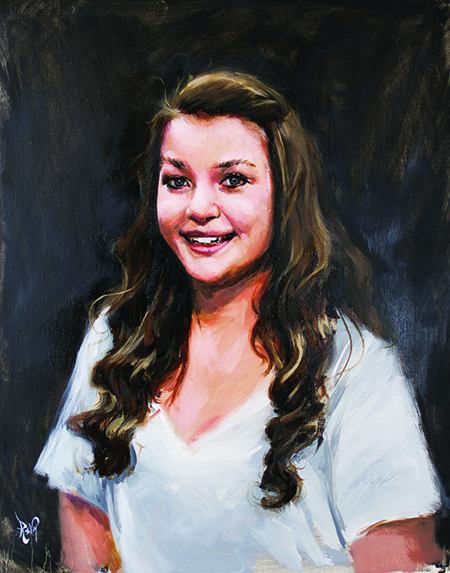“I’m always amazed that every time I paint a stranger for a commission or special project like this, I end up feeling acquainted with them by the end. Actually, it’s more than that. It’s like his or her spirit ends up shining through the hues of the canvas. I have never met [the little girl], but I know she is a beautiful soul. And it is an immense privilege to capture that radiant spirit for her family.”
