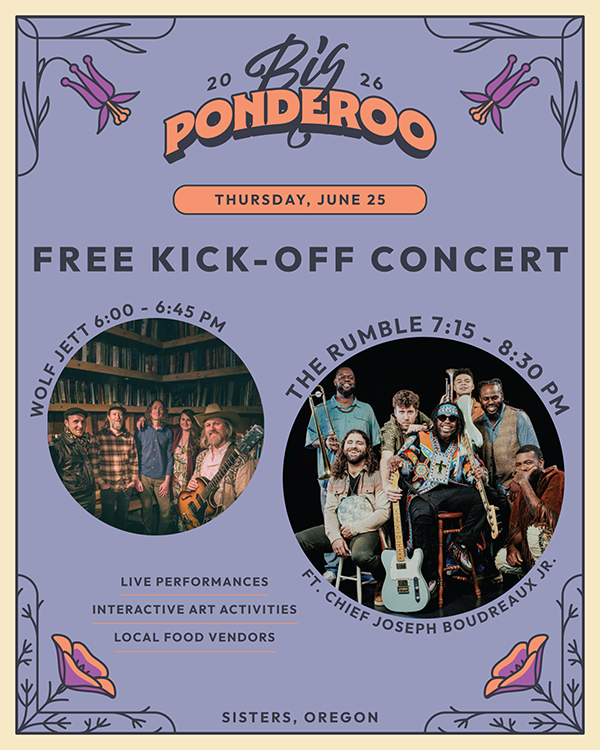 Help us kick-off the festival weekend with a FREE community event on Thursday, June 25 at Village Green Park. Bring the whole family and enjoy live performances, interactive art activities, local food vendors, and a great summer night in Sisters!
