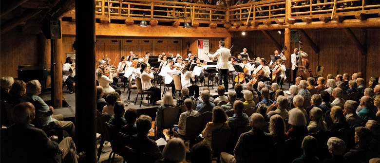 (Brett Mitchell with the Sunriver Music Festival Orchestra at Sunriver Resort Great Hall | Photo by David Young-Wolff)