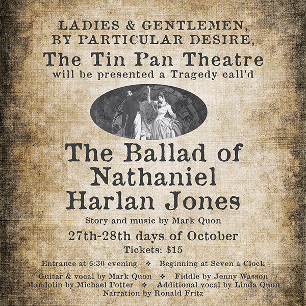 The first performance of The Ballad of Nathaniel Harlan Jones has officially sold out, but limited tickets remain for the second and final night of this original, multimedia production written and produced by Mark Quon.