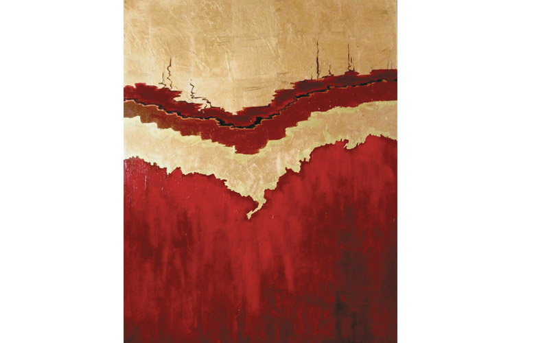 These exhibits and others featured her unique batik process with watercolor on rice paper which creates luminous, transparent and highly textured images. Brown’s current art at the Sunriver Lodge exhibit features batik landscapes depicting scenes from the Pacific Northwest including a mountain vista with a prodigious field of Fireweed as well as a rocky creek bed on a wooded hillside.
